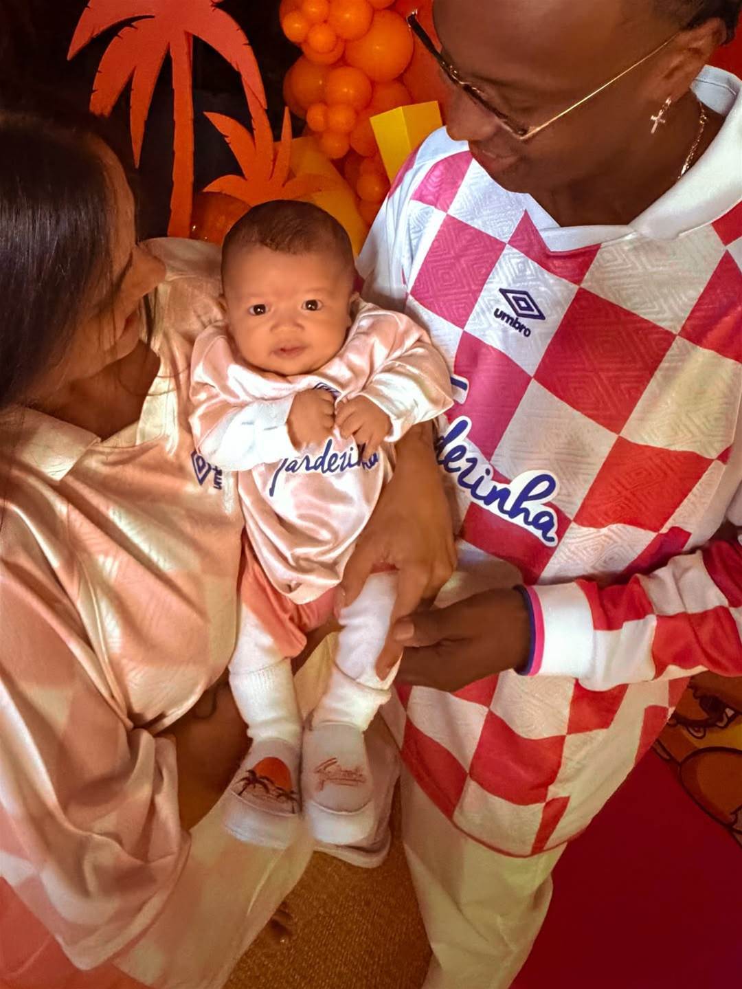No carrossel de fotos compartilhado no Instagram, Carol mostrou detalhes da decoração do mêsversário do bebê com cores e elementos que remetem ao evento de pagode comandado por Thiaguinho, além de registros ao lado de familiares.
