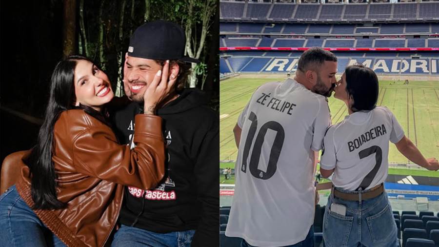 No momento, Zé Felipe a assistia da plateia. O cantor posou ao lado de amigos no camarim da apresentação. Mais cedo, ele havia postado uma foto em clima de romance com a boiadeira.