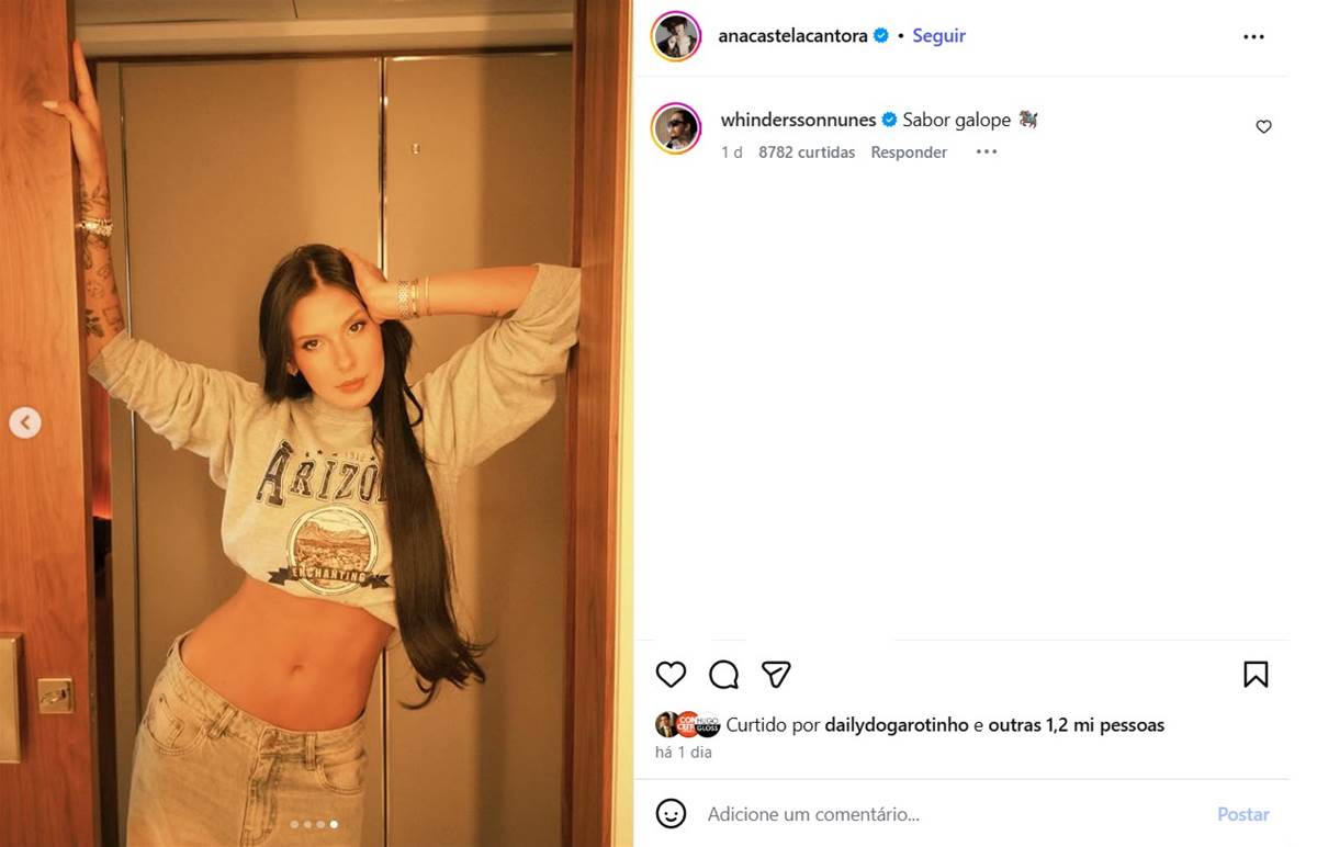 No dia 3 de fevereiro, Ana postou sua mais recente sequência de imagens no Instagram, levando seguidores a comentarem sobre tudo, desde sua beleza até sua energia vibrante. Mas foi Whindersson quem quebrou todas as expectativas ao deixar um comentário inesperado e audacioso, escrevendo: "Sabor galope".