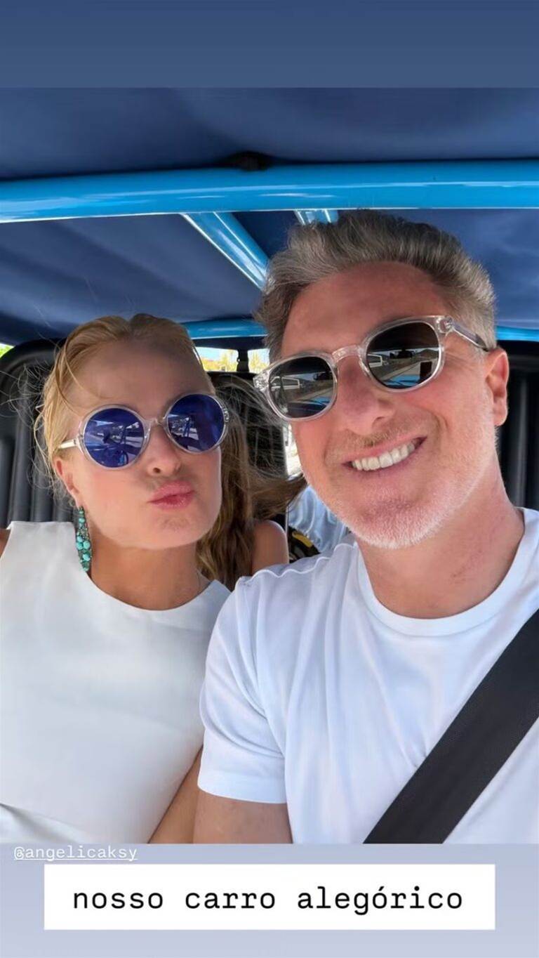 Pouco depois, o apresentador dividiu outro registro, desta vez ao lado da esposa, a também apresentadora Angélica. Na imagem, o casal surge passeando de buggy em um cenário litorâneo. Mantendo o tom leve das publicações, ele brincou com a situação e escreveu: “Nosso carro alegórico”. As imagens rapidamente repercutiram entre seguidores, que comentaram sobre a forma diferente escolhida pelos dois para aproveitar o período festivo.