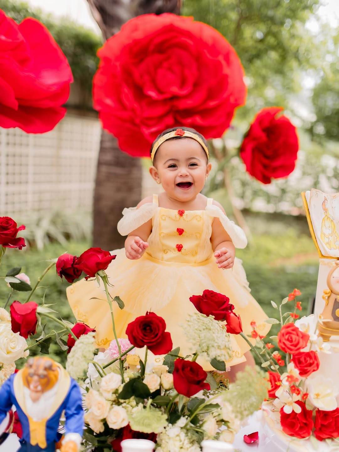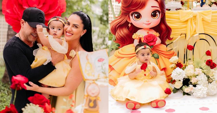 A herdeira da influenciadora digital e do cantor sertanejo ganhou uma festa com o tema A Bela e a Fera para comemorar seus 10 meses de vida. O evento foi decorado com muitas rosas-vermelhas e com os personagens do clássico infantil.