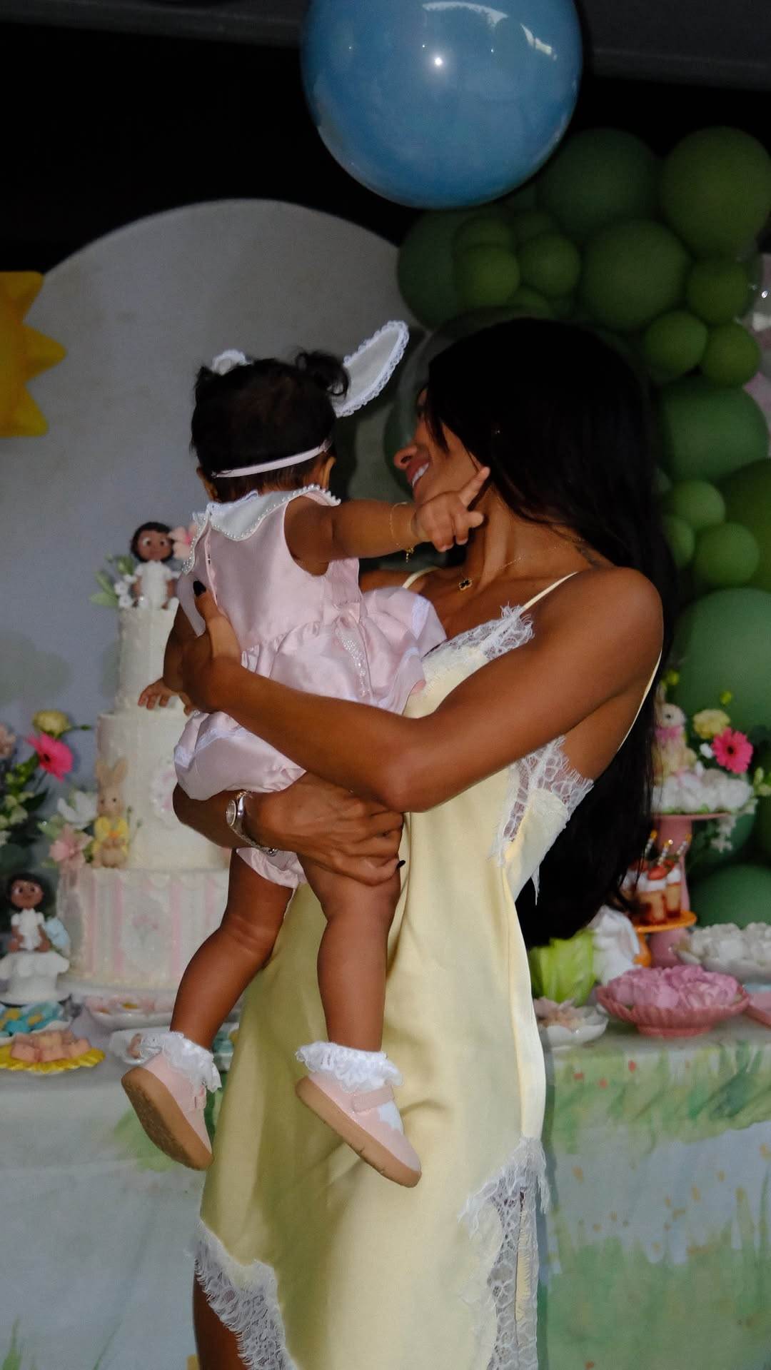 A menina completou 11 meses de vida nesta terça-feira, 14, e ganhou uma festa com o tema 'Coelhinhos'. Nos Stories, a dançarina e ex-BBB mostrou os detalhes da decoração, que contou com muitos balões coloridos, flores e uma família com três coelhos, em referência às mamães e a bebê.