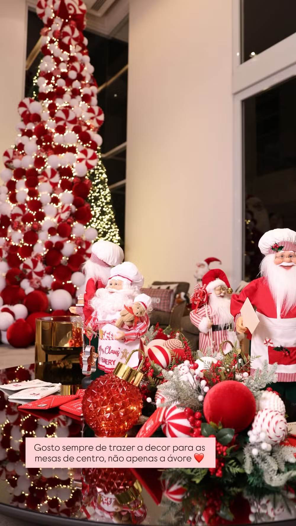 A influenciadora compartilhou nas redes uma série de fotos ao lado da filha, ambas vestidas de vermelho, combinando com a estética da celebração. A proposta deste ano aposta no clássico vermelho e branco, com elementos lúdicos que remetem a um Natal tradicional. Ana compartilhou diversos registros da montagem, destacando que a produção ocupa vários ambientes internos e externos da casa.