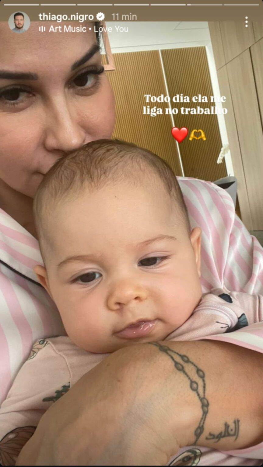 “Todo dia ela me liga no trabalho“, contou Thiago Nigro sobre o momento em sua rotina. “Minha banguelinha”, derreteu-se ele ao exibir a bebê sorrindo.