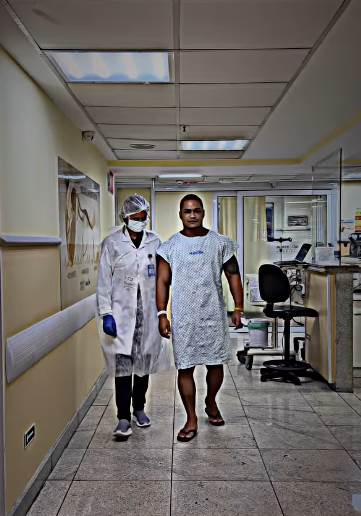 Após precisar passar por duas angioplastias, procedimento minimamente invasivo utilizado para desobstruir artérias do coração, o policial compartilhou um vídeo em que aparece fazendo uma pequena caminhada no corredor do hospital ao lado de uma profissional da saúde.