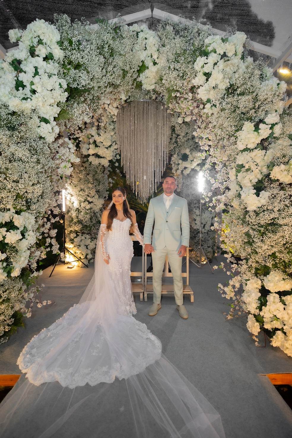 Além da festa, uma capela foi montada no jardim da propriedade, já que o casal sonhava com uma cerimônia ao ar livre, diante da natureza. A decoração contou com um deque em um lago, cristais e flores, e foi assinada por Alberto Fonseca. Vale ressaltar que não foi um evento simples e contou com 1.000 m² de cenografia.