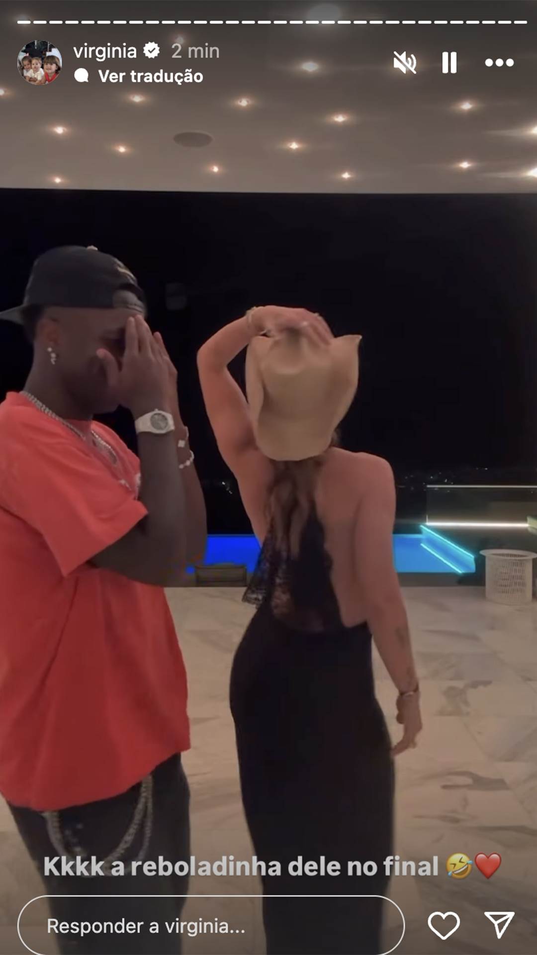 Com emojis de risada e um coração vermelho, Virginia não perdeu a chance de chamar atenção para o movimento do atleta, que parece estar relaxado e à vontade em companhia da influenciadora, mesmo enquanto os rumores de um possível affair entre os dois continuam circulando na mídia.