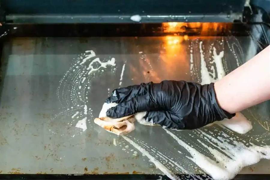 Deixe agir por 15 a 20 minutos. O bicarbonato vai amolecer a gordura e soltar a sujeira sem riscar o vidro.