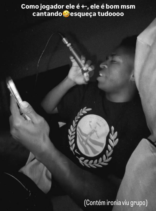 "Como jogador ele é mais ou menos, ele é bom mesmo cantando [emoji de risada]. Esqueça tudo", escreveu a influenciadora no registro.