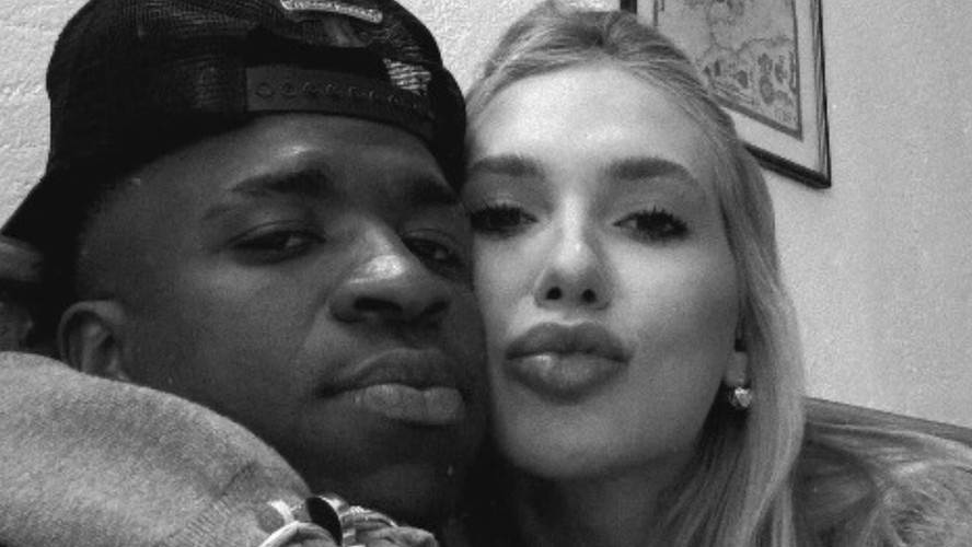 "Com você é onde eu quero estar. Meu bem, você não percebe? Eu te amo, eu te amo", diz o refrão da música Raindance, do cantor Daive. Na imagem em preto e branco, Virginia tem o braço no pescoço de Vini, e ele usa um boné para trás.
