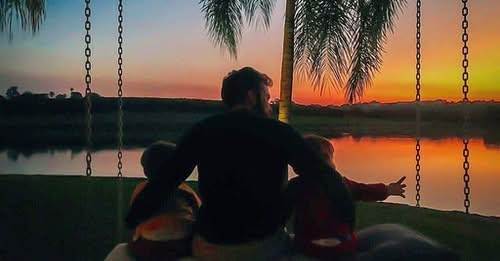 O dia 19 de maio de 2021 foi especial para Thales Bretas e seus filhos, Romeu e Gael. O viúvo do inesquecível ator Paulo Gustavo, que infelizmente faleceu aos 42 anos devido a complicações da Covid-19, decidiu passar um momento de introspecção e carinho com seus filhos em uma fazenda no interior de São Paulo. Como é comum em suas postagens, Thales compartilhou uma foto tocante no Instagram, que capturou a essência do instante: ele e os meninos, todos abraçados, observando o pôr do sol enquanto estavam sentados em um balanço diante de um lago.