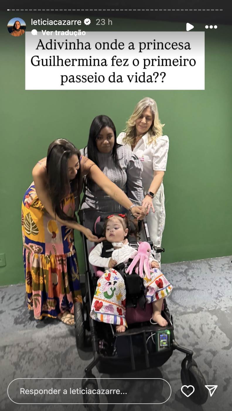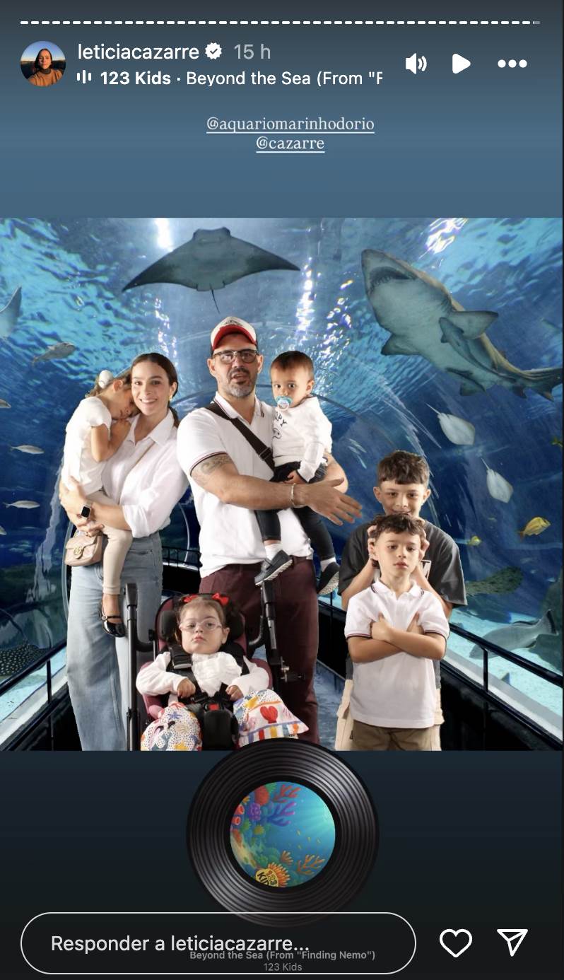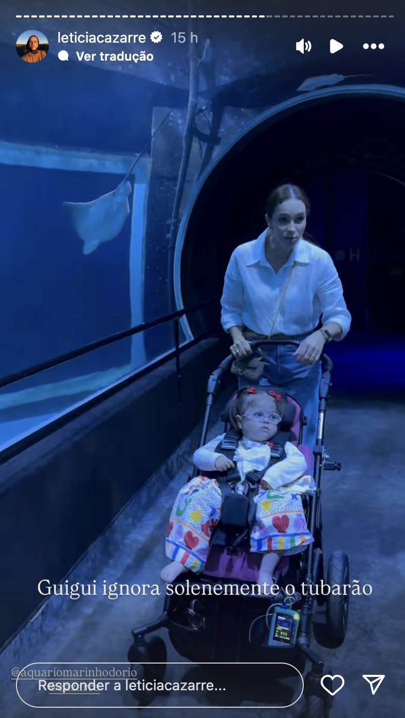 Juliano e Leticia levaram os filhos para curtirem um dia no aquário do Rio de Janeiro. Maria Guilhermina foi levada ao local em uma ambulância e teve todo o suporte de uma equipe médica para acompanhar o passeio. Tranquila, ela curtiu o momento especial com os irmãos enquanto via as atrações do local.
