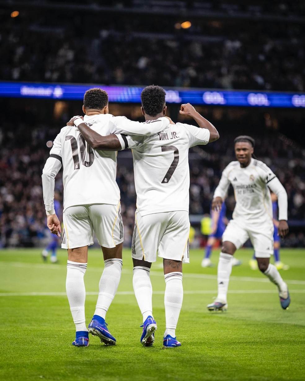 Vini Jr, de 25 anos, comemorou mais uma noite especial de UEFA Champions League, nesta terça-feira (20), e usou as redes sociais para se declarar aos companheiros do Real Madrid. “Noite de Champions é diferente. Eu amo vocês, meus manos!”, escreveu o atacante, destacando o clima de união após a partida.