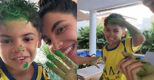Em uma sequência de stories divertidos, Gabriela mostrou como o menino a chamou para brincar: "Gabi, vem aqui e fecha o olho", escreveu ela, sorrindo, enquanto aceitava o convite de Léo para uma atividade um tanto inusitada. Nas imagens, ambos estavam com as mãos e o rosto pintados de tinta verde, uma obra de arte criada pelo jovem artista em formação.