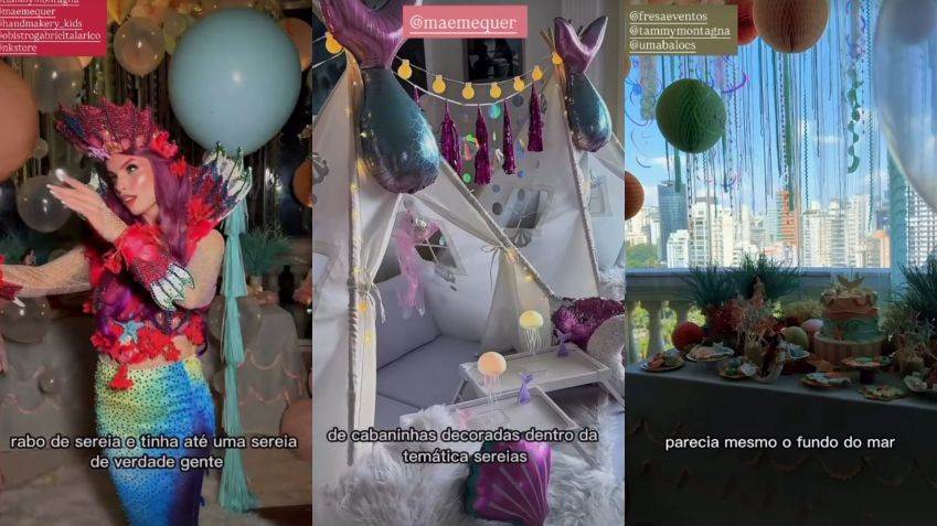 O tema escolhido para a festa foi "Sereia", e não foi por acaso. Maria Manoela, com seu amor por criaturas mágicas e o mar, ficou maravilhada ao ver o mundo aquático ganhar vida em sua própria sala de estar. Desde o bolo decorado com conchas e estrelas do mar até os docinhos personalizados que pareciam tesouros marítimos, cada detalhe da festa resplandecia o tema escolhido.