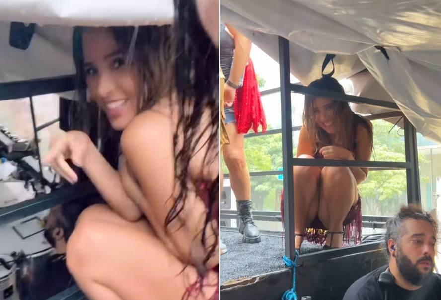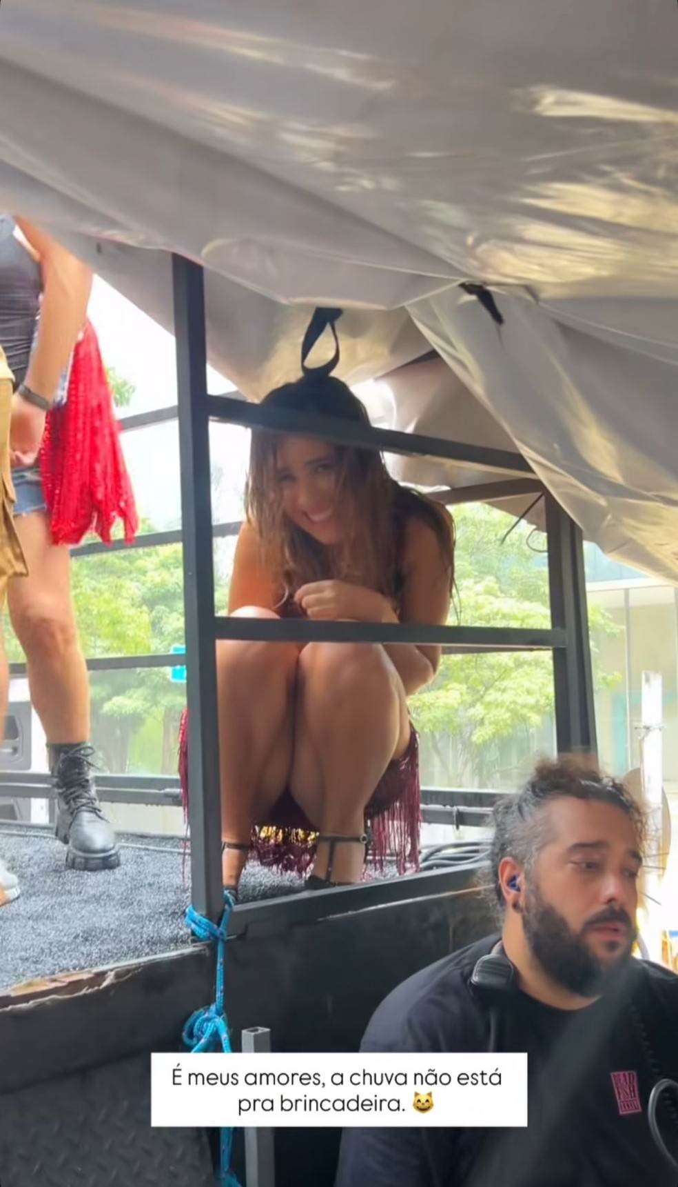 Wanessa Camargo, de 43 anos, é uma das convidadas do trio elétrico do Bloco do Abrava, comandado por Tiago Abravanel, na manhã deste sábado (7), em São Paulo. Após se apresentar no circuito, a cantora foi surpreendida por um temporal durante a folia e correu para debaixo da lona do trio elétrico para se proteger da chuva.