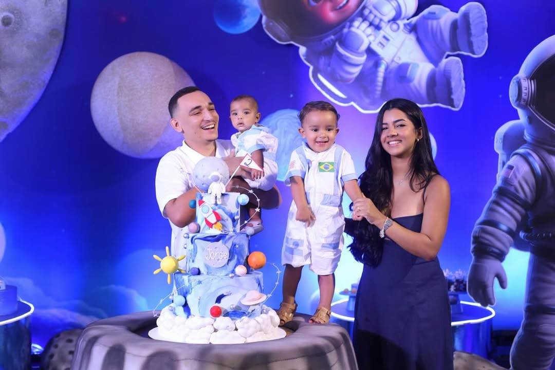O cantor João Gomes e a influenciadora digital Ary Mirelle comemoraram o aniversário de 2 anos do filho mais velho, Jorge, em grande estilo. Os dois organizaram uma festa sofisticada com o tema de Galáxia do Jorge em um salão de festas.