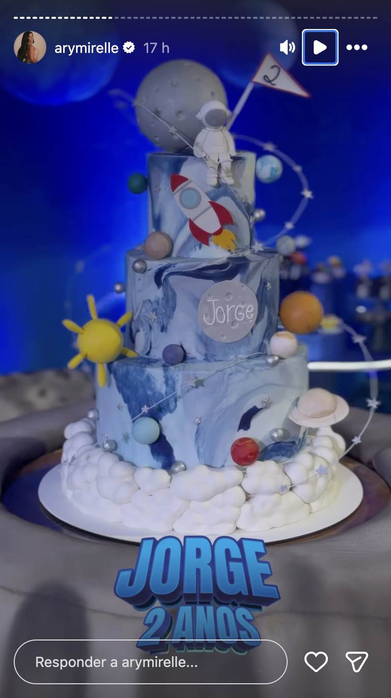 Inclusive, o bolo de aniversário teve o tema de sistema solar.