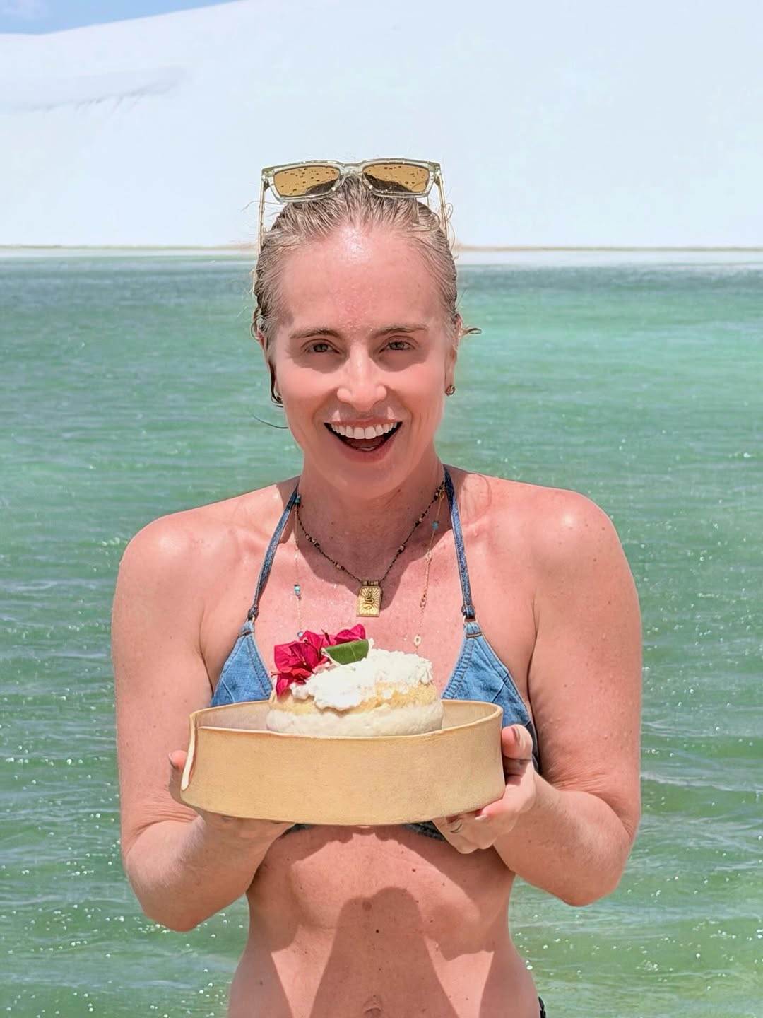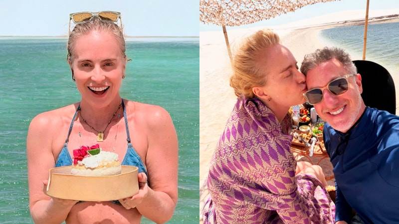 Angélica apareceu com biquíni estiloso e maiô cavado enquanto renovava o bronzeado no meio das dunas e piscinas naturais. Na legenda, ela celebrou a viagem especial.
