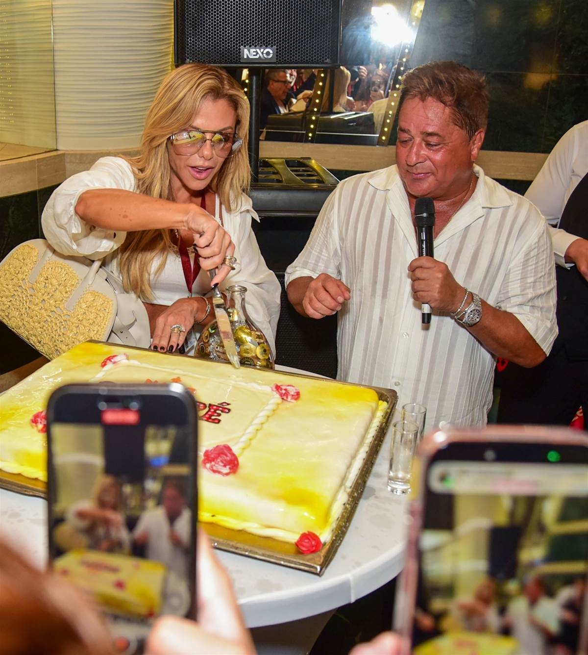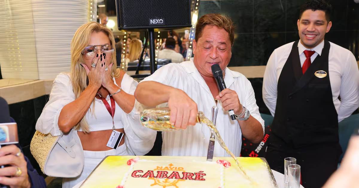 A esposa do cantor Leonardo, Poliana Rocha, está acompanhando o sertanejo no Navio Cabaré. Nesta terça-feira, 18, começou a viagem do famoso e de seus admiradores e um bolo enorme foi preparado para os presentes. O que ninguém esperava é que o artista não apenas cortaria o doce, como também o "batizaria".