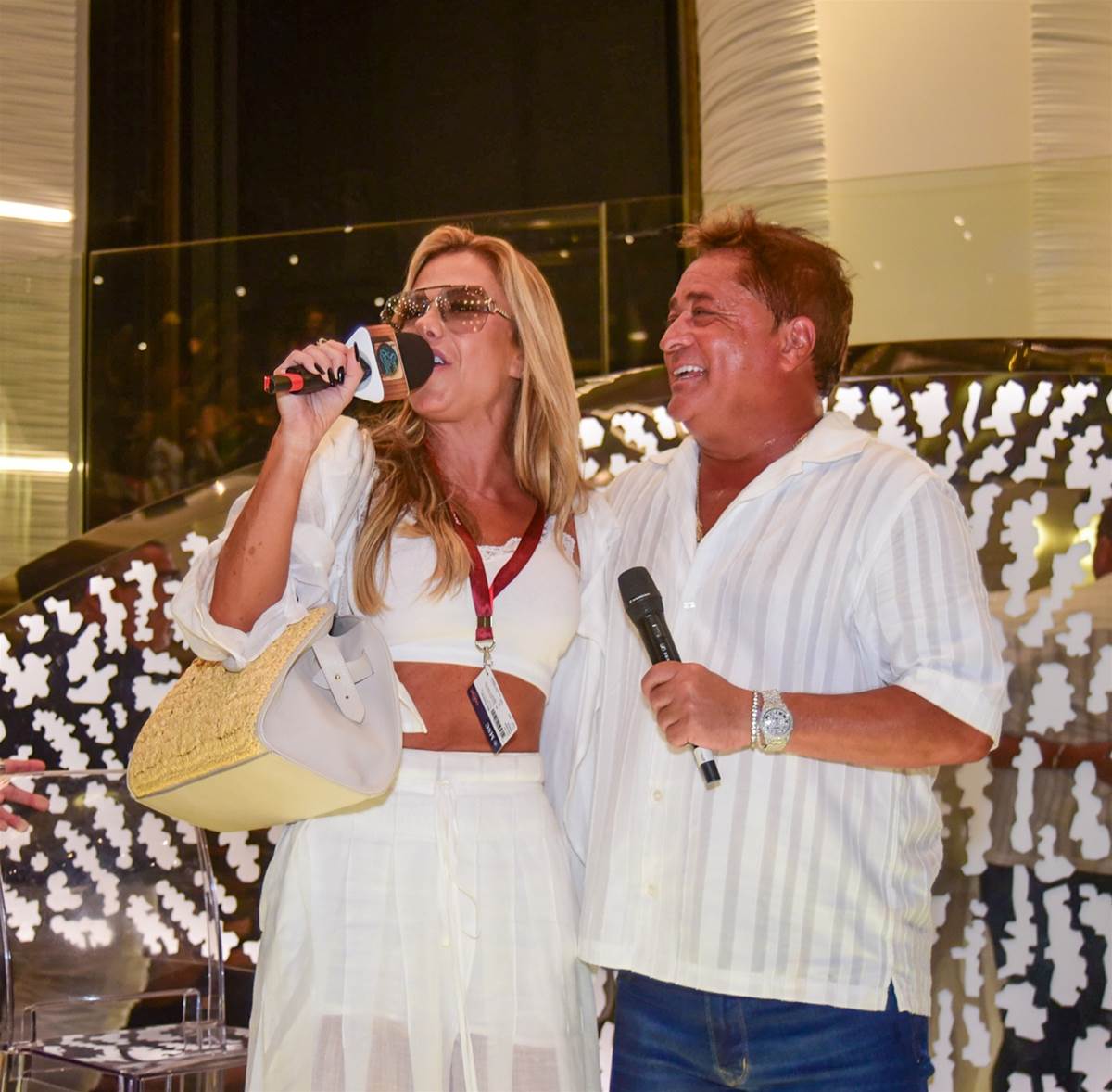 Na primeira noite no Navio Cabaré, Poliana Rocha arrasou na produção e surpreendeu ao aparecer exibindo sua barriga sarada. Seguindo o dress code da "festa do branco", ela apostou em um conjuntinho da cor escolhida para o evento.
