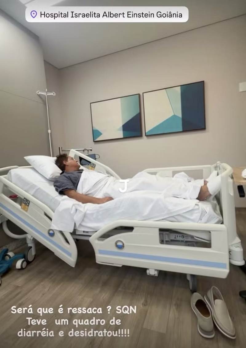 A influenciadora digital e jornalista Poliana Rocha usou as redes sociais para compartilhar um desabafo sobre a saúde do marido, o cantor Leonardo. Nesta segunda-feira, 8, ela mostrou o artista deitado em uma maca, recebendo soro na veia no Hospital Israelita Albert Einstein, em Goiânia, e explicou o motivo de sua ida ao centro médico.