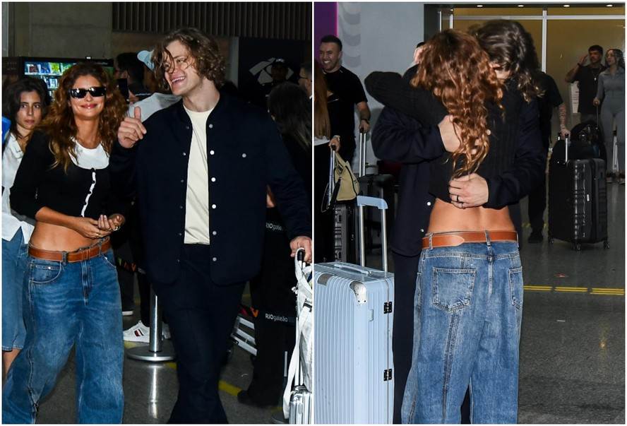 O atleta olímpico chegou sorridente e ganhou um forte abraço da artista, que é protagonista da novela Coração Acelerado, da Globo. Isadora recebeu o namorado cheia de estilo, usando uma calça jeans larguinha, um cropped nas cores branca e preta e um óculos de sol.
