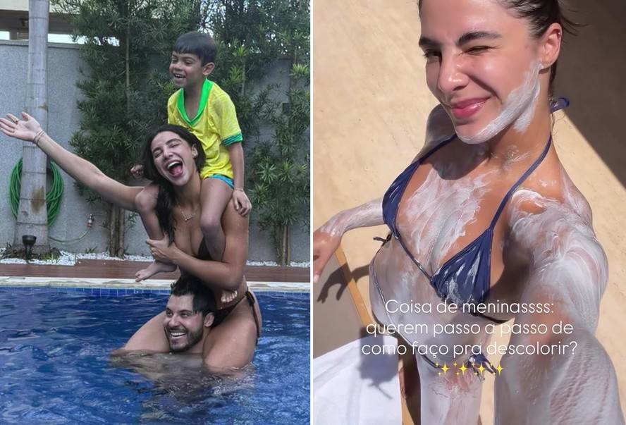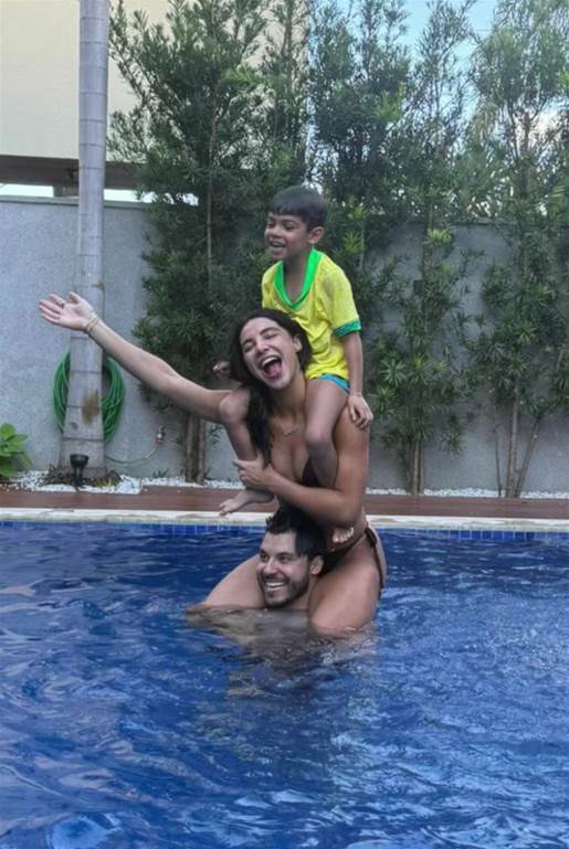 A influenciadora e empresária Gabriela Versiani, de 27 anos de idade, postou em seus Stories do Instagram, nesta segunda-feira (29), registros curtindo a piscina com o noivo, o cantor sertanejo Murilo Huff, de 30 anos, e Léo, de 6, filho dele com a saudosa e eterna Rainha da Sofrência, Marília Mendonça (1995-2021).