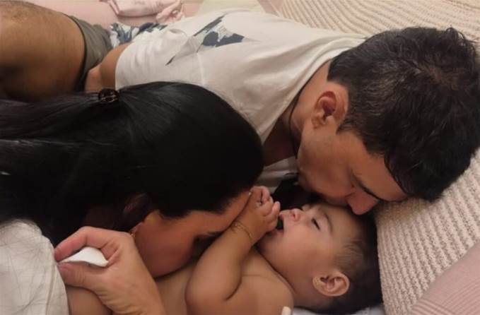 Graciele chegou ao evento com a filha no colo. A bebê de quase 1 ano de vida surgiu com um vestido vermelho e esbanjou fofura ao mostrar sua simpatia para os fotógrafos de plantão.
