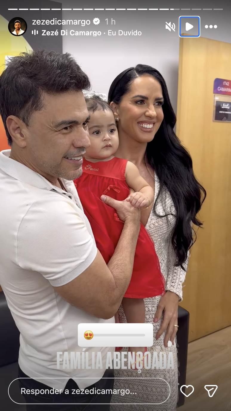 Na noite desta terça-feira, 11, o cantor Zezé Di Camargo reuniu amigos e familiares para a gravação do seu programa especial de final de ano no SBT. O evento aconteceu na sede da emissora na Grande São Paulo e contou com a presença da filha caçula dele, Clara, e da esposa, Graciele Lacerda.