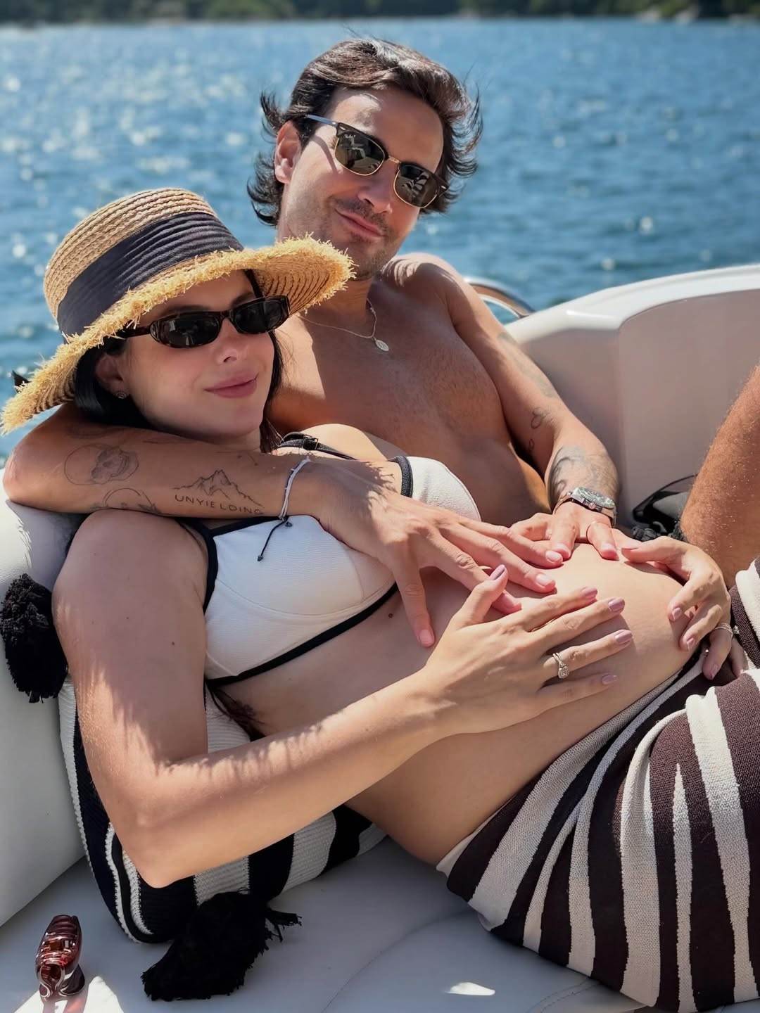 A atriz, que já é mãe de Antonio Enrico, de cinco anos, e Vicenzo, de um, está à espera do terceiro filho e deixou a barriga à mostra ao curtir um passeio de barco com o marido, Igor Raschkovscky.