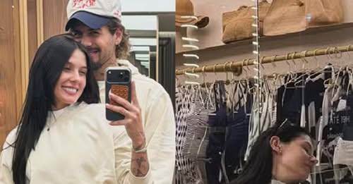 Iniciando a noite com um abraço diante do espelho do closet, Zé e Ana mostraram-se em sintonia, com ele posando alegremente enquanto ela destacava sua silhueta em um moletom cropped.