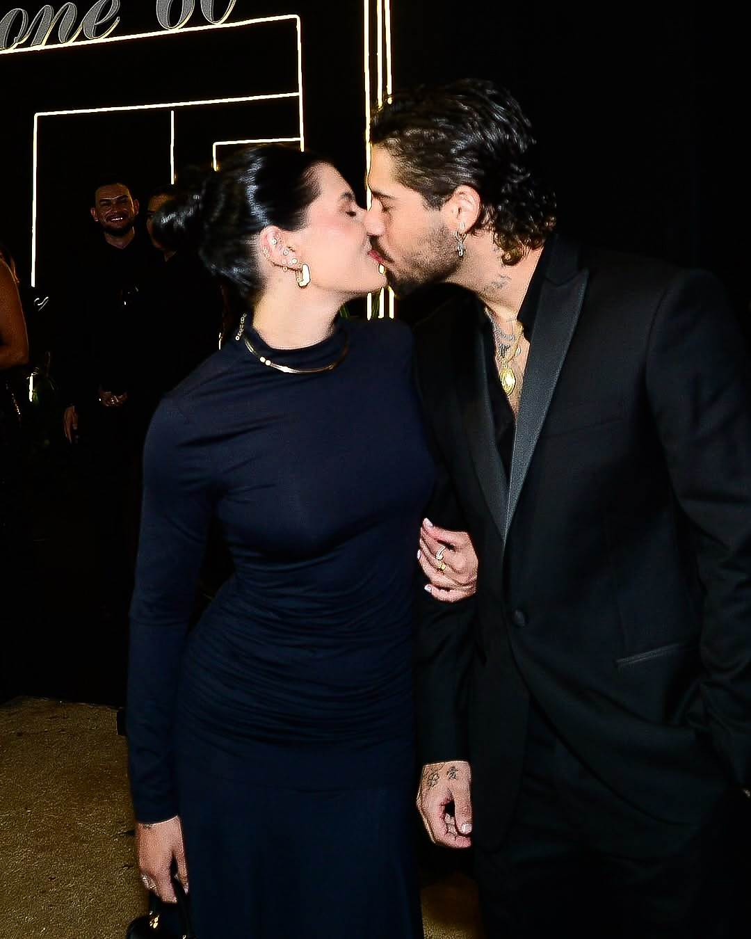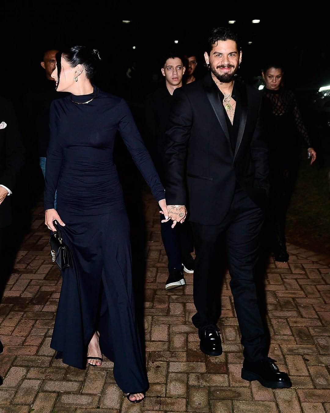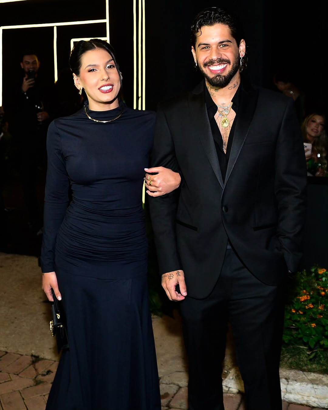Na entrada do evento, o casal surgiu sorridente, trocando beijos e exalando sintonia diante dos fotógrafos. Ana apostou em um vestido longo de mangas compridas, com uma fenda alta na perna direita, maquiagem marcante, acessórios em dourado e cabelo preso em um coque elegante. Já Zé Felipe apareceu com um terno preto clássico, cabelo penteado para trás e um sorriso apaixonado.
